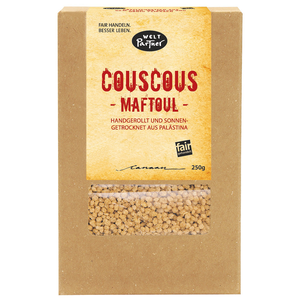 „Maftoul“ ist der traditionelle Name für Couscous aus Palästina. Er ist jedoch etwas dunkler, gröber und aufgrund der händischen Herstellung auch unregelmäßiger als sein nordafrikanischer Bruder.