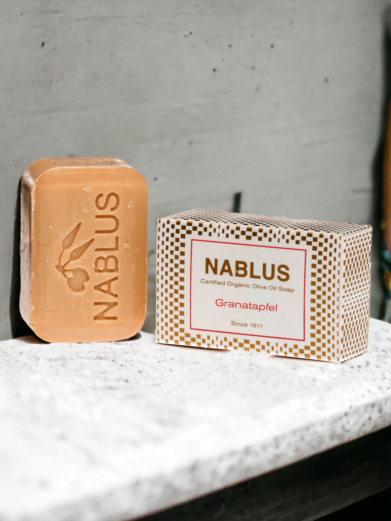 Die Zugabe von Granatapfelöl verleiht der Seife eine zusätzliche pflegende Wirkung und hinterlässt ein angenehmes Gefühl auf der Haut. Die Seife ist auch mit einem Hauch von Natron und Glyzerin angereichert, um den Feuchtigkeitshaushalt der Haut zu unterstützen.