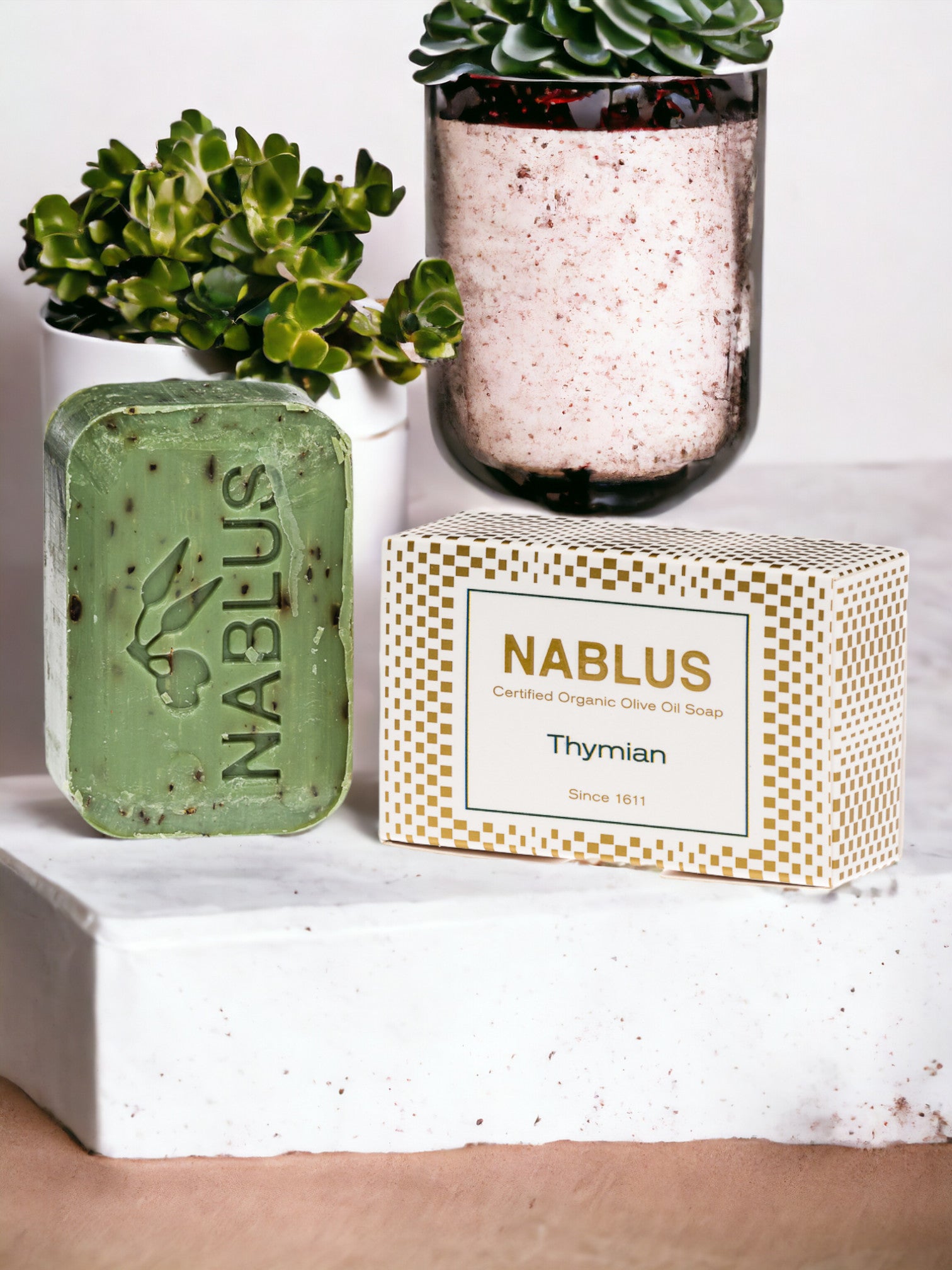 Nablus Soap Seife besteht aus natürlichen, pflanzlichen und unbehandelten Bestandteilen, wovon etwa 80% aus Olivenöl erster Pressung stammen. Im Gegensatz zu vielen handelsüblichen Seifen, die synthetische Tenside oder Detergenzien enthalten, ist Nablus Soap Seife besonders schonend und eignet sich auch für empfindliche und sensible Hauttypen. Die Seife ist vegan, palmölfrei, biozertifiziert und von Hand hergestellt. Sie ist frei von Tensiden, Parabenen und Konservierungsstoffen.