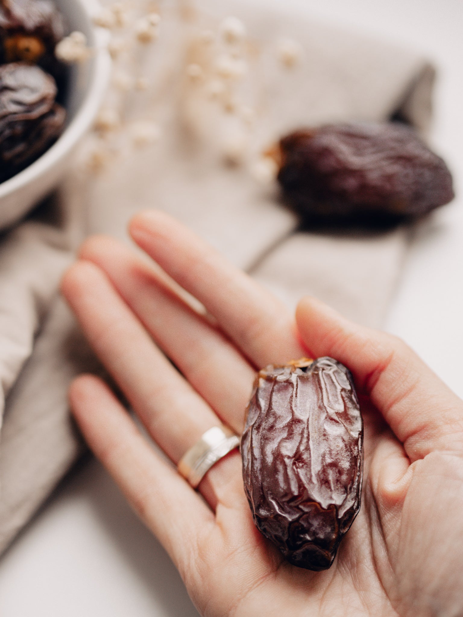Damit die Datteln ihre saftige Konsistenz behalten, empfehlen wir die Aufbewahrung im Kühlschrank. Luftdicht verschlossen und gekühlt bleiben sie besonders frisch. Wenn sie über längere Zeit bei Zimmertemperatur gelagert werden, trocknen sie nach und werden etwas fester – perfekt für alle, die eine bissfestere Textur bevorzugen.