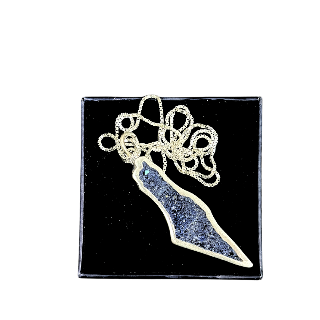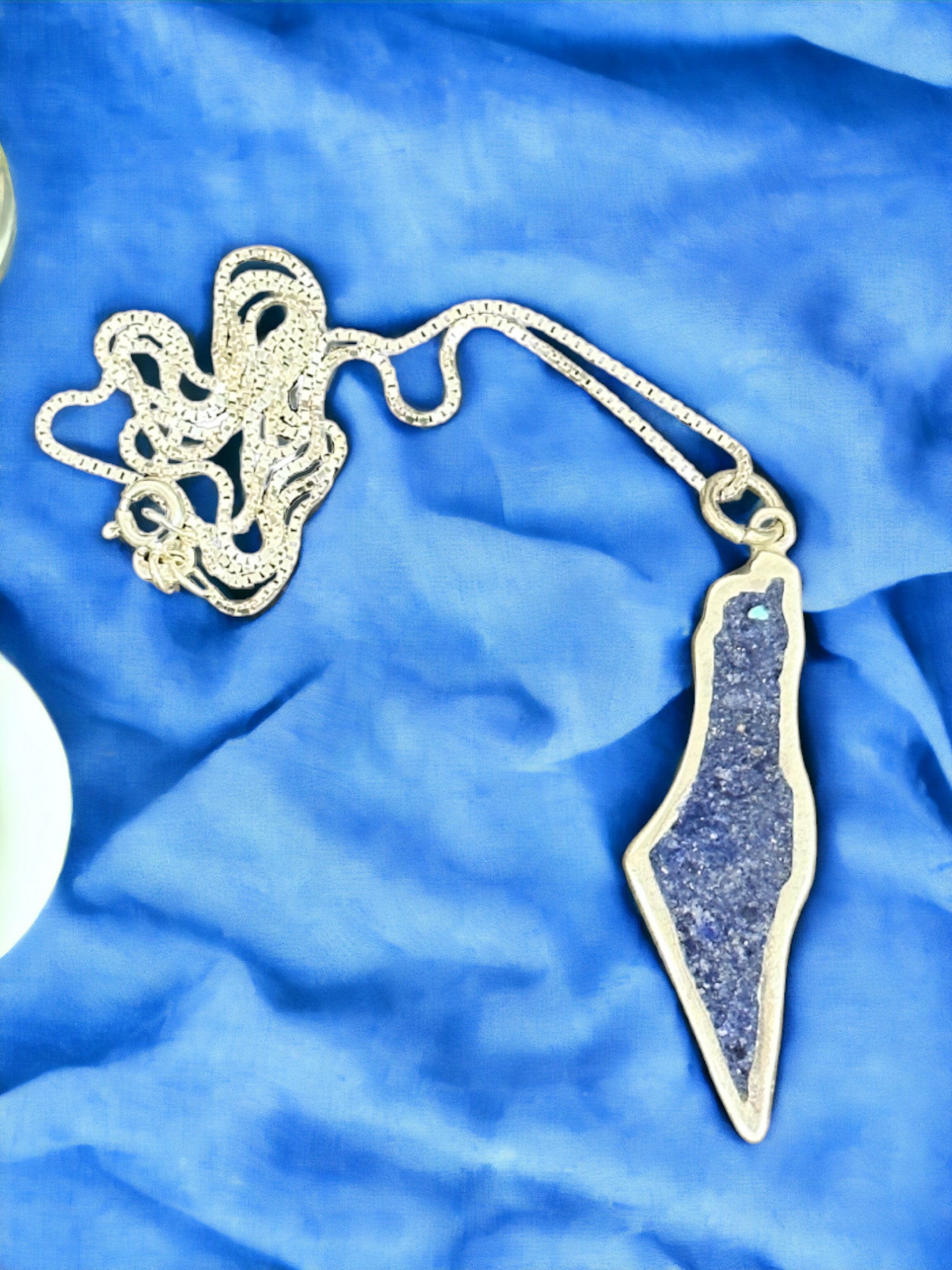 Diese Halskette ist ein wunderschönes und bedeutungsvolles Schmuckstück, das Ihre Liebe zu Palästina zeigt. Sie besteht aus einer silbernen Landkarte Palästinas, die mit vielen kleinen Korallen besetzt ist. Die Steine haben verschiedene Farben und Formen, die die Vielfalt und Schönheit Palästinas repräsentieren. Die Karte zeigt die historischen Grenzen Palästinas. Die Halskette ist an einer verstellbaren Silberkette befestigt. Sie ist ein Symbol für die Hoffnung und den Widerstand des palästinensischen Volkes und seiner Kultur und ein spektakuläres Geschenk für sich selbst oder für jemanden, der Ihnen am Herzen liegt.