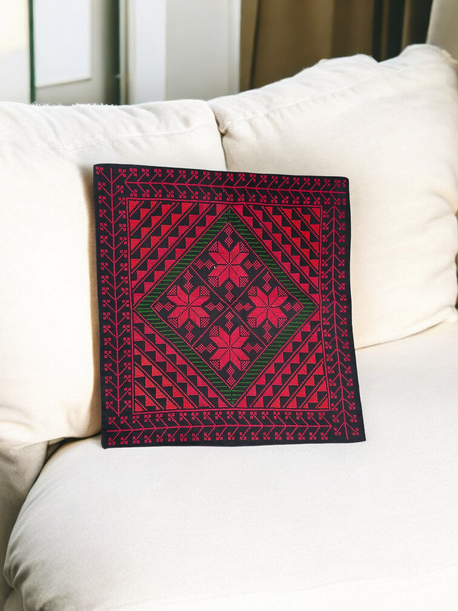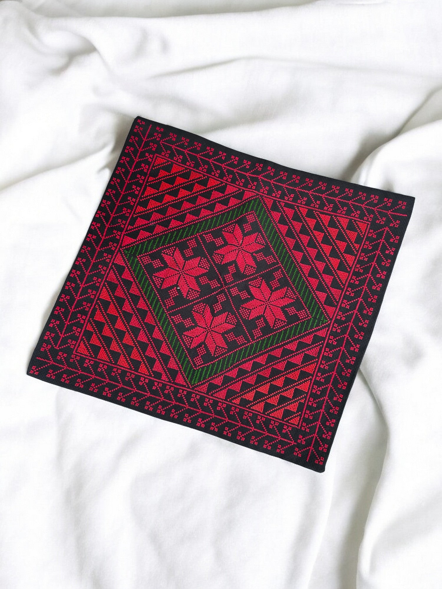 Tatreez Kissenbezug aus Palästina: Dieser wunderschöne Kissenbezug ist ein wahres Kunstwerk. Er wird von talentierten Kunsthandwerkern in Palästina handgefertigt und besticht durch seine leuchtenden Farben und faszinierenden Muster. Jeder Kissenbezug erzählt eine einzigartige Geschichte und ist Ausdruck der reichen palästinensischen Kultur und Tradition der Tatreez-Stickerei. Dieser Kissenbezug verleiht Ihrem Zuhause einen Hauch von Eleganz und ist gleichzeitig ein Symbol Ihrer Wertschätzung für handgefertigte Kunst aus Palästina. Verschönern Sie Ihr Zuhause mit diesem einzigartigen Kissenbezug und tauchen Sie ein in die faszinierende Welt des Tatreez-Handwerks.